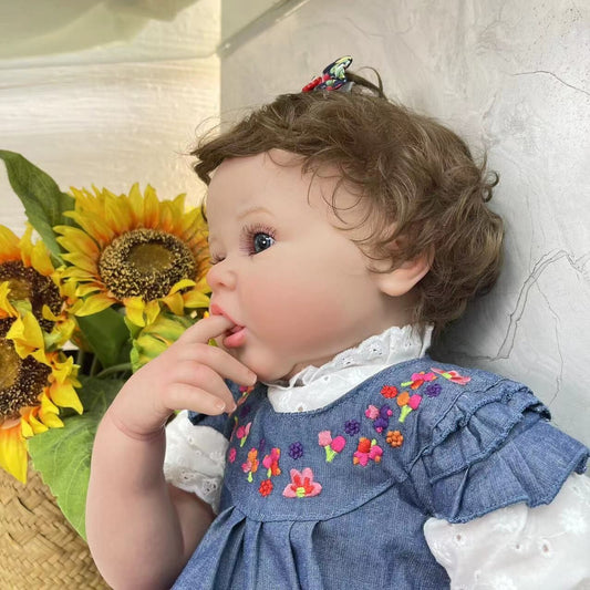 Lovely Long Curly Hair Toddler Princess Girl Lifelike Reborn Baby Dolls That Look Real Silicone Visible Veins 60CM 24 Inch Weighted Soft Cloth Realistic Baby Doll Collectible Art Doll