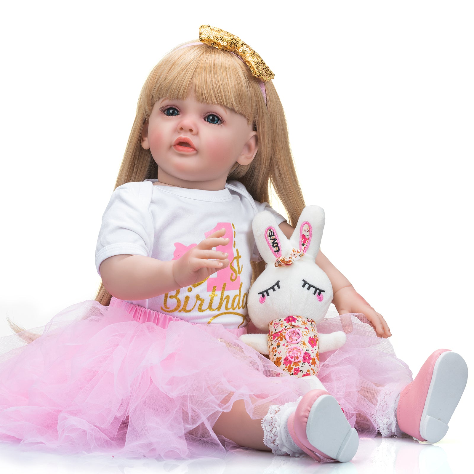 Lifelike Reborn Baby Dolls That Look Real 60CM Standing Toddler Princess Girl Doll Long Blonde Hair Pink Dress Soft Cuddly Body Realistic Newborn Baby Dolls for 3+ Year Old Girls