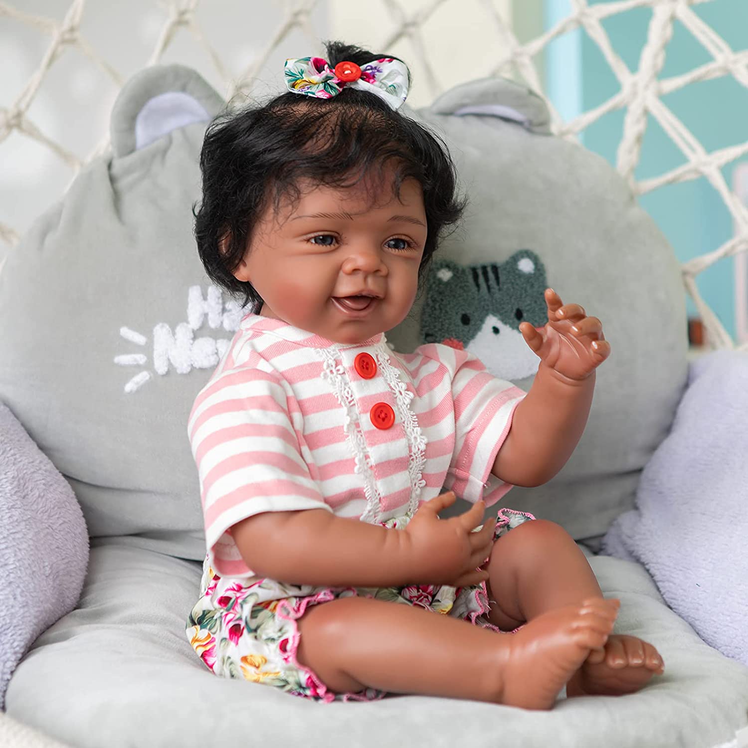 MNMJ lifelike reborn baby dolls black girl - 22-inch baby soft body african american realistic newborn babies dolls smiling girls real life baby dolls with feeding kit kids gift for 3+ year girls